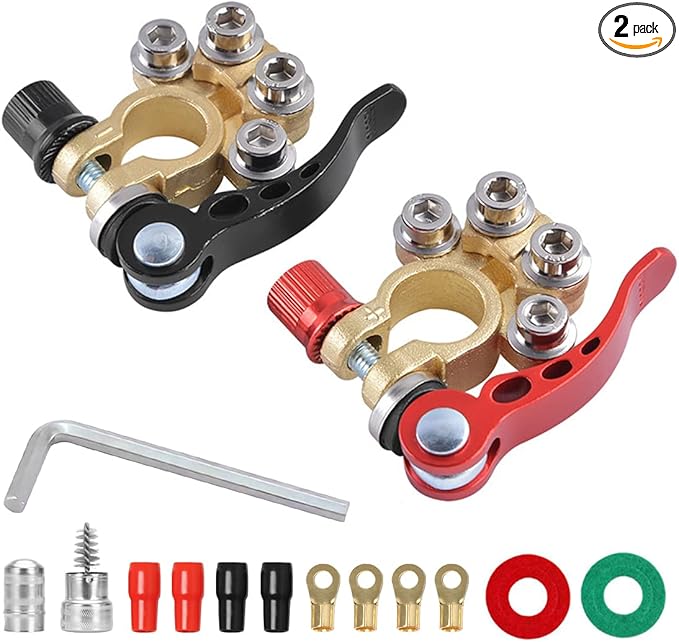 • [4 WAY BATTERY TERMINAL] Made of high-quality brass and steel material which is corrosion resistant with excellent electrical conductivity that can reduce voltage distortion and transmission loss. And it has 4 ports for multiple cable connections, wiring is easy and convenient to modify.