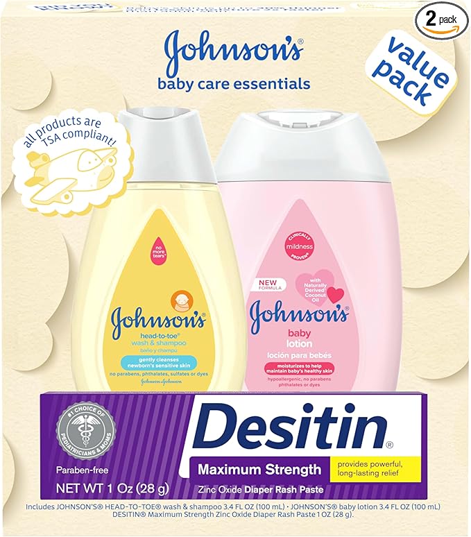 Body Wash & Shampoo: 3.4-fluid ounce bottle of Johnson’s Head-to-Toe 2-in-1 Baby Body Wash & Shampoo cleanses while maintaining baby’s natural moisture barrier